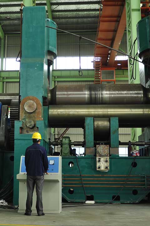 三輥卷板機通過其三根工作輥(兩根下輥和一根上輥)的相互作用,能夠將金屬板材卷成圓形、弧形以及一定范圍內的錐形工件。